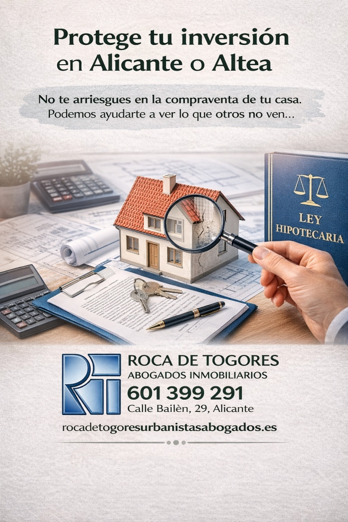 Nueva semana, nueva oportunidad de proteger tu inversión! ¿Sabes qué es lo más común cuando alguien va a comprar o vender una casa en Alicante o Altea? Pensar: “No necesito abogado, con la agencia y el notario es suficiente”. Y ahí es donde empieza el problema. Porque lo que no ves (vicios ocultos, irregularidades urbanísticas, cláusulas trampa o sorpresas fiscales) puede costarte miles de euros después de firmar. En Abogados Inmobiliarios Roca De Togores Urbanistas somos los abogados inmobiliarios que te ayudan a ver lo que otros no te enseñan… antes de que sea tarde. Si nunca habías pensado en contratarnos… este post es para ti. ¿Empezamos la semana protegiendo tu futuro?